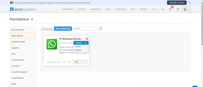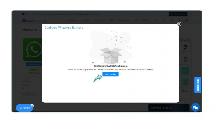 - Install “WhatsApp Business” from leadsquared app marketplace