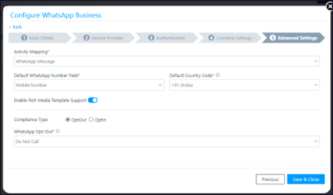 WhatsApp Opt-Out – According to the above selection, a value will be selected from the drop down field.