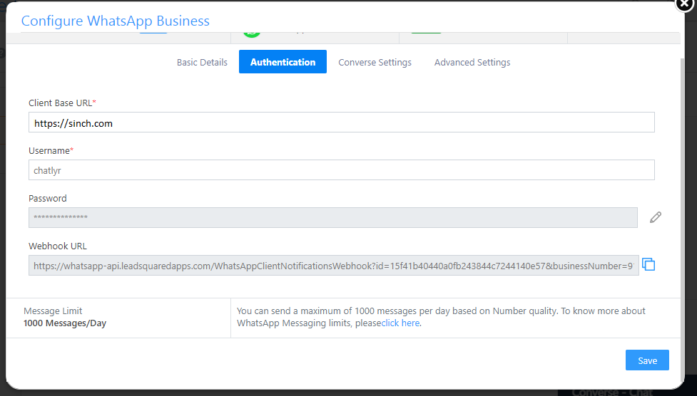 - You must have a WhatsApp Business API account live on Sinch India to use this Integration. You can read more about it on https://www.aclmobile.com/whatsapp-business-solutions LeadSquared account.